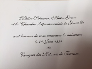 Le 10 juin 1891 à 8 heures et demi du matin, se sont réunis à Grenoble 56 notaires pour procéder à la fondation d’un Congrès des notaires de France, destiné à soutenir les intérêts matériels et moraux du notariat.